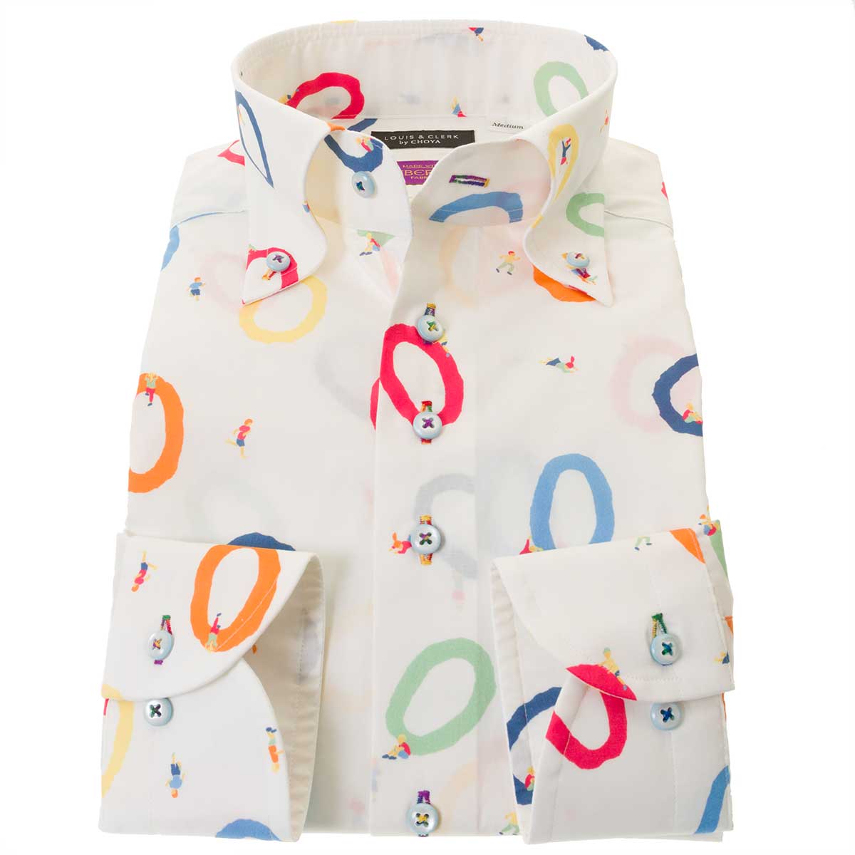 国産長袖綿100 ドレスシャツ タナローン Proudmen リバティプリント ウィニングリングス スリムフィット ホワイトメンズ メンズシャツ専門店 紳士 リバティチャンピオンズ ボタンダウン Style 胸ポケット無 Worksドレスシャツ スポーツの祭典を身にまとう